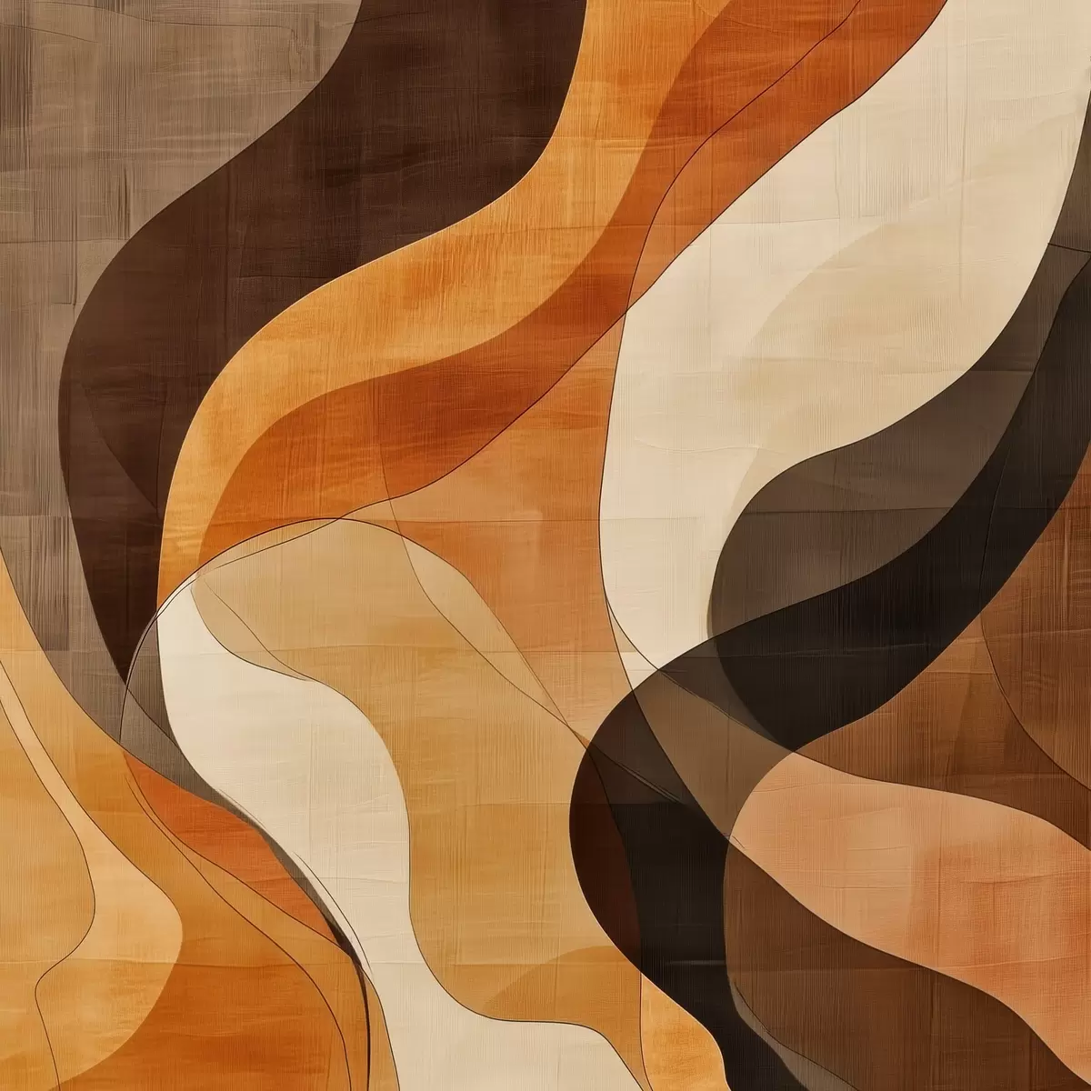 Poster Composición abstracta con líneas onduladas dinámicas en una paleta de tonos marrón terracota f48851
