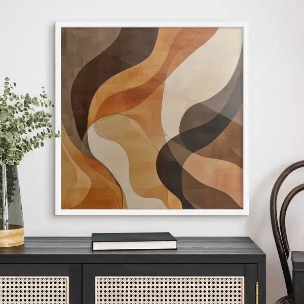Poster Composición abstracta con líneas onduladas dinámicas en una paleta de tonos marrón terracota Nr f48851