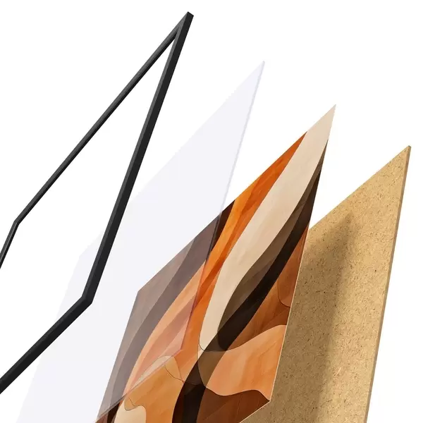 El póster consta de marco, plexiglás, imagen impresa y soporte de aglomerado. El póster puede colgarse inmediatamente en la pared gracias a los soportes de la parte posterior.