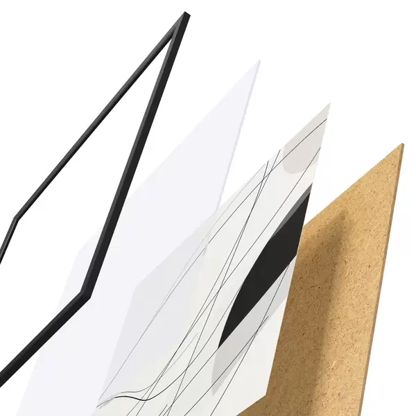 El póster consta de marco, plexiglás, imagen impresa y soporte de aglomerado. El póster puede colgarse inmediatamente en la pared gracias a los soportes de la parte posterior.