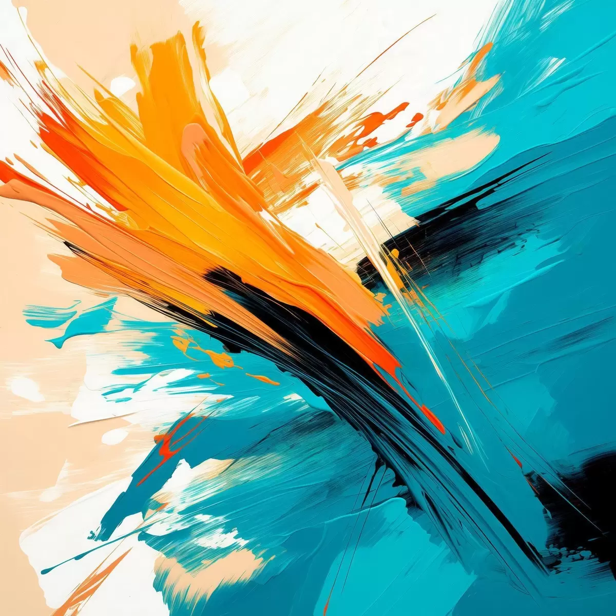 Poster Una obra de estilo contemporáneo, con una paleta de colores que va del turquesa al terracota f48855