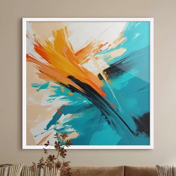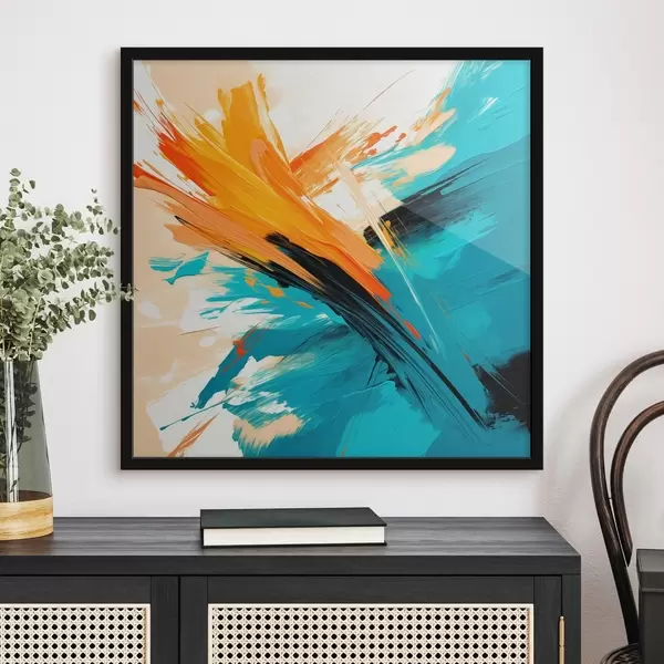Poster Una obra de estilo contemporáneo, con una paleta de colores que va del turquesa al terracota Nr f48855