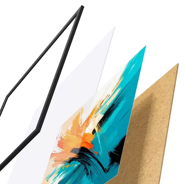 El póster consta de marco, plexiglás, imagen impresa y soporte de aglomerado. El póster puede colgarse inmediatamente en la pared gracias a los soportes de la parte posterior.