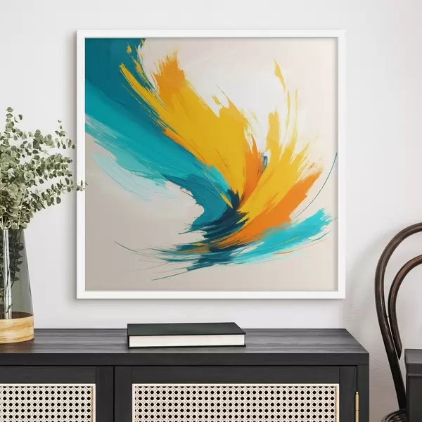 Poster Remolino enérgico en tonos amarillos y azules, en un estilo pictórico contemporáneo f48856