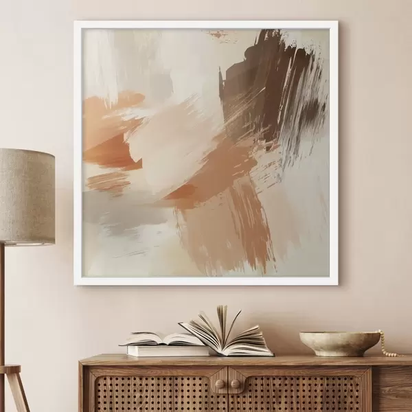 Poster Imitación de pinceladas abstractas en tonos arena y marrones f48857