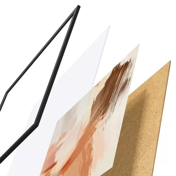 El póster consta de marco, plexiglás, imagen impresa y soporte de aglomerado. El póster puede colgarse inmediatamente en la pared gracias a los soportes de la parte posterior.