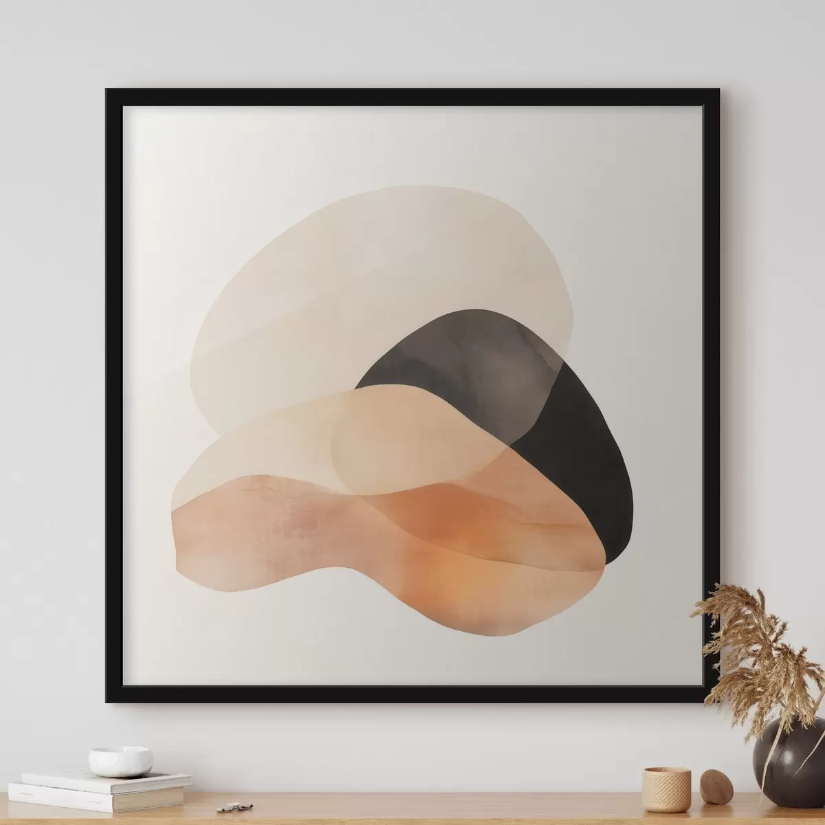 Poster Formas abstractas en una paleta de tonos beige y melocotón con toques oscuros, en un estilo minimalista f48863