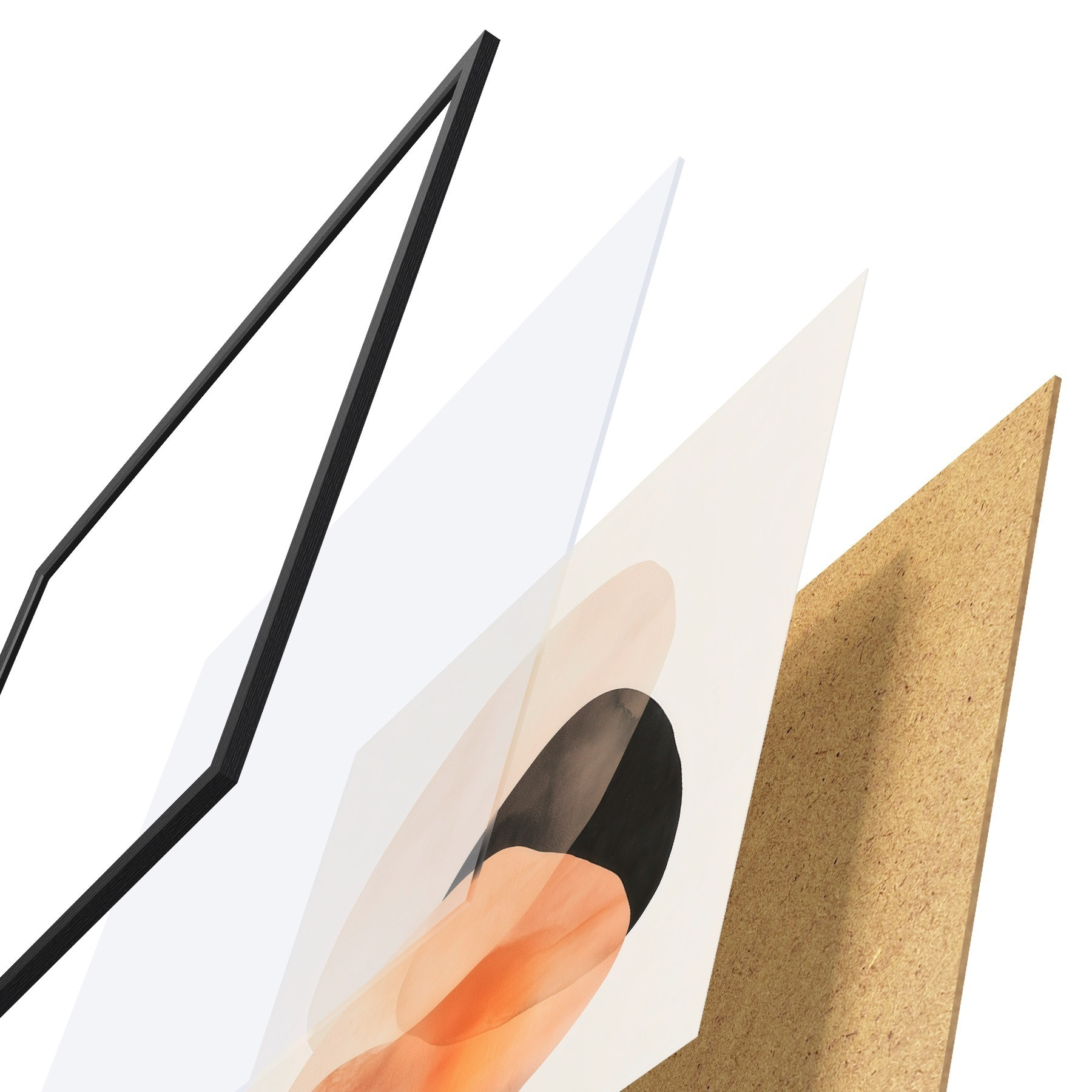 El póster consta de marco, plexiglás, imagen impresa y soporte de aglomerado. El póster puede colgarse inmediatamente en la pared gracias a los soportes de la parte posterior.