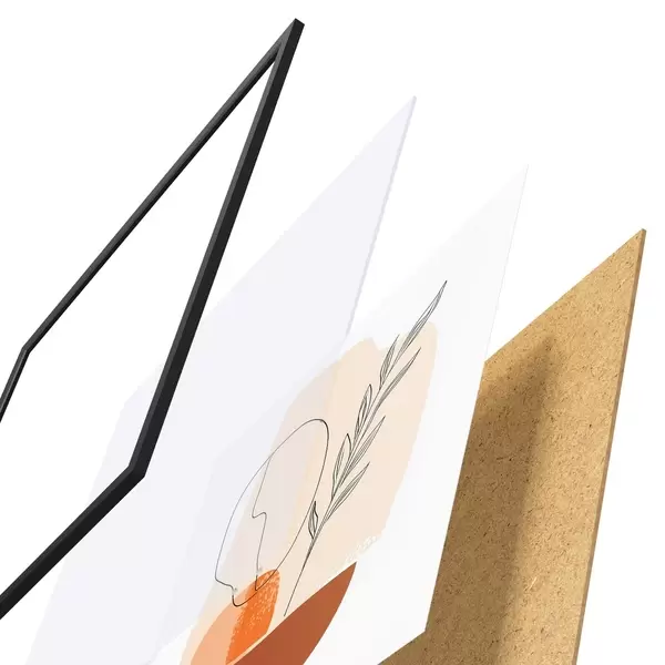 El póster consta de marco, plexiglás, imagen impresa y soporte de aglomerado. El póster puede colgarse inmediatamente en la pared gracias a los soportes de la parte posterior.