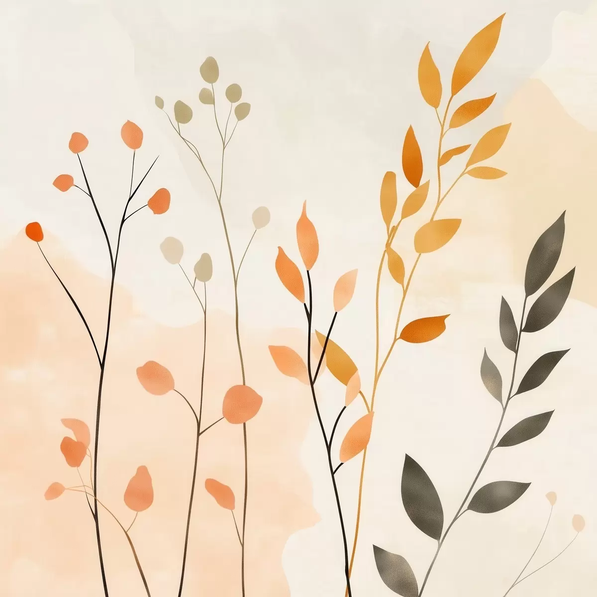Poster Composición al pastel con delicado follaje en un estilo pictórico contemporáneo f48873