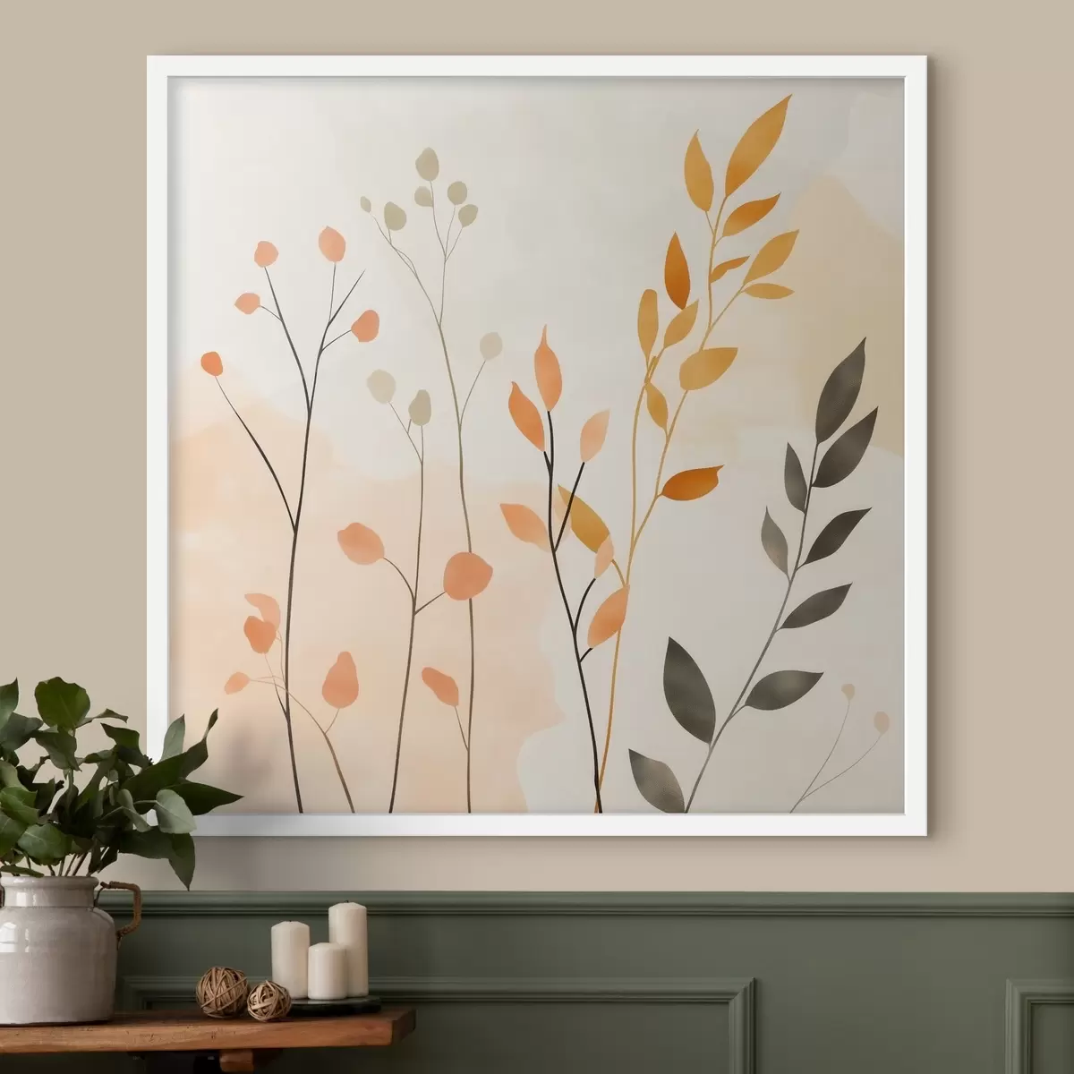 Poster Composición al pastel con delicado follaje en un estilo pictórico contemporáneo Nr f48873