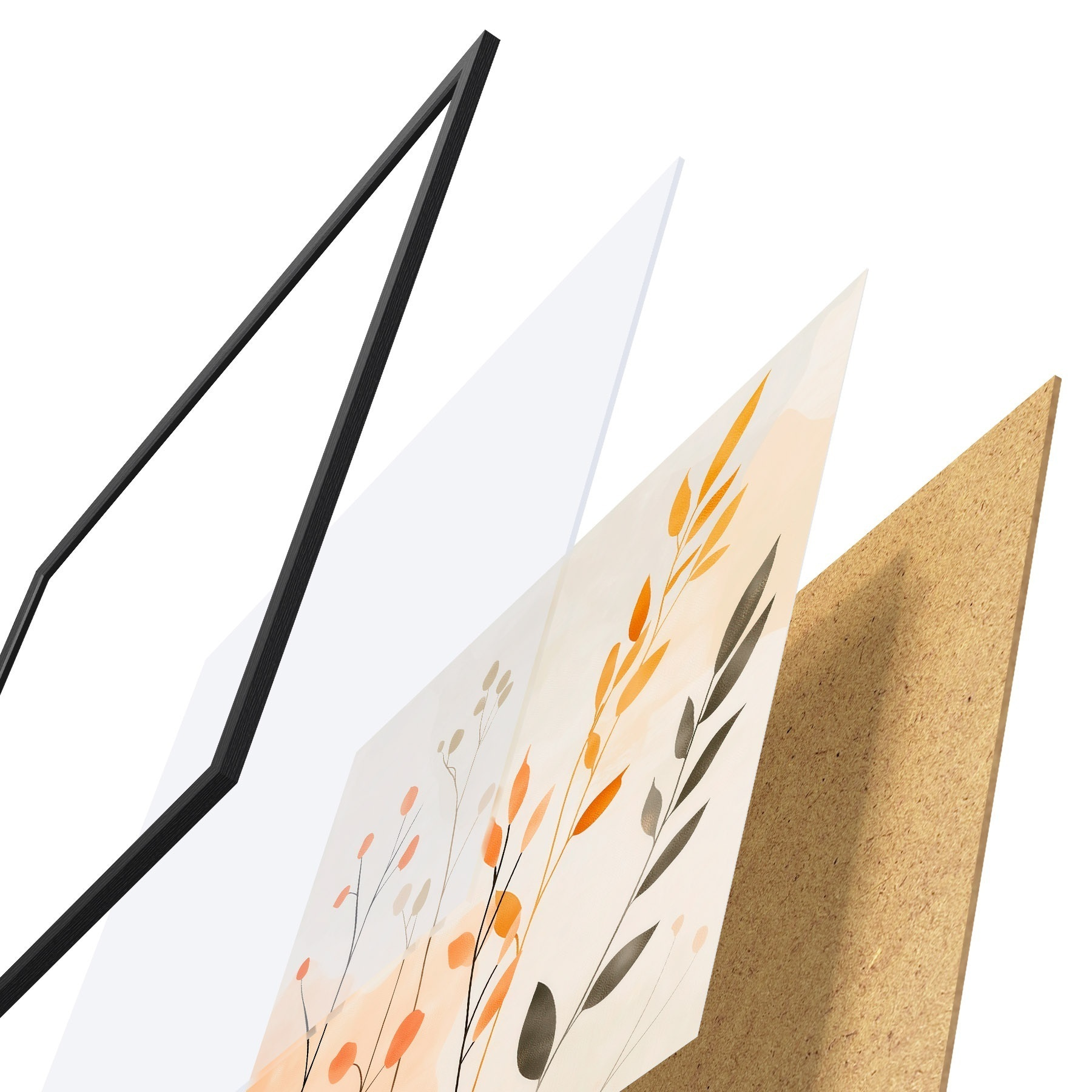 El póster consta de marco, plexiglás, imagen impresa y soporte de aglomerado. El póster puede colgarse inmediatamente en la pared gracias a los soportes de la parte posterior.