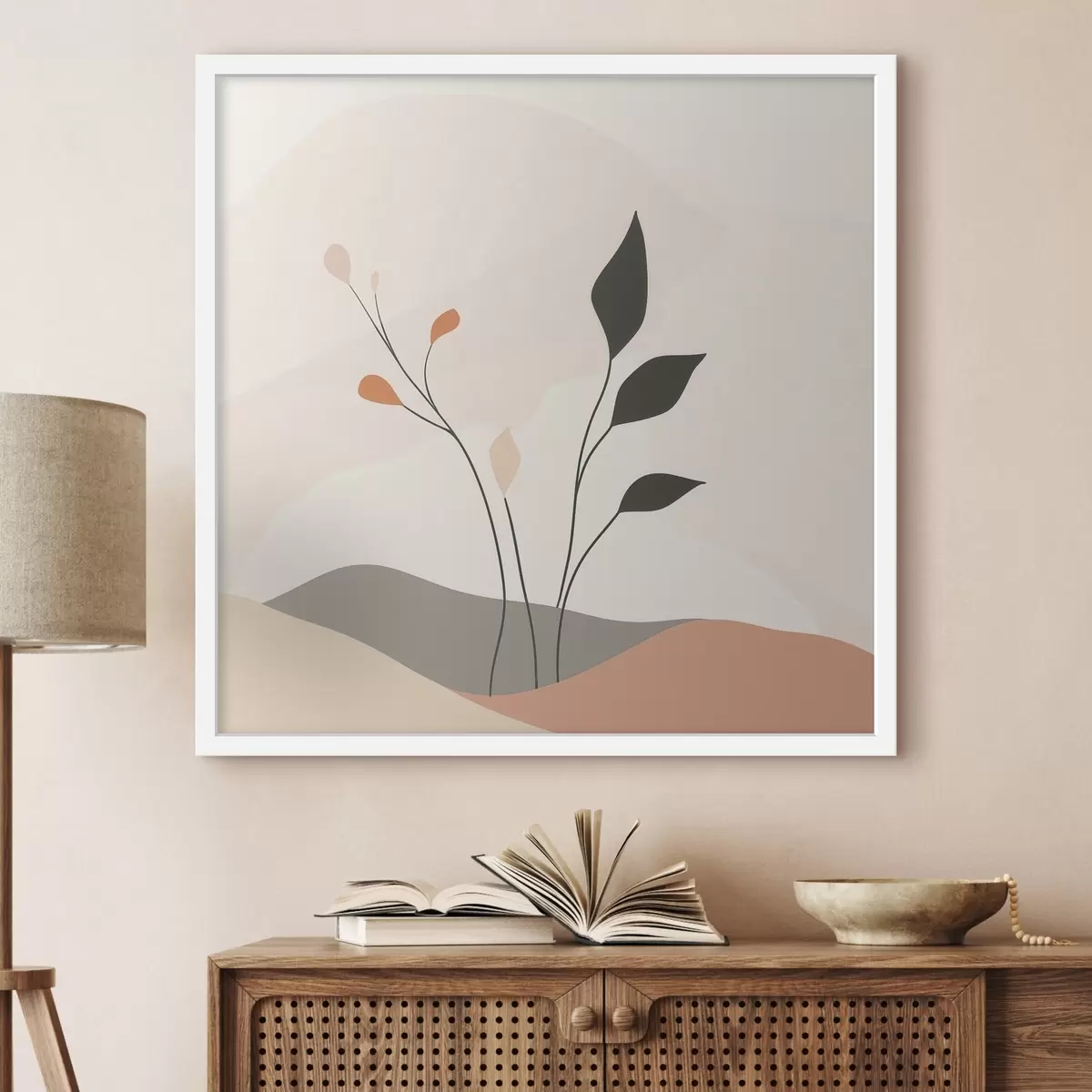 Poster Escena lacónica de temática vegetal con formas orgánicas en un estilo de arte contemporáneo f48874