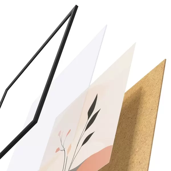 El póster consta de marco, plexiglás, imagen impresa y soporte de aglomerado. El póster puede colgarse inmediatamente en la pared gracias a los soportes de la parte posterior.