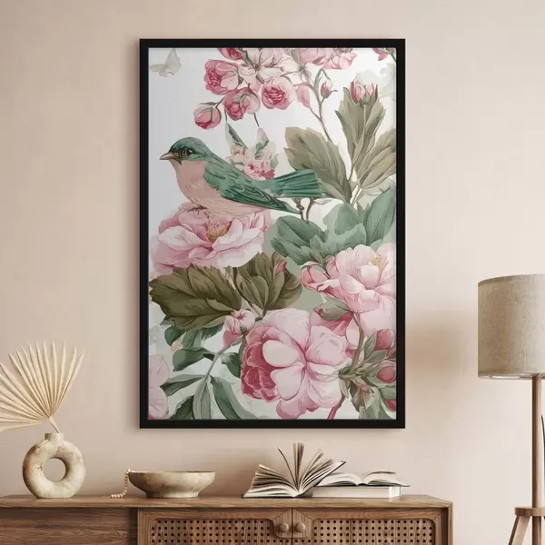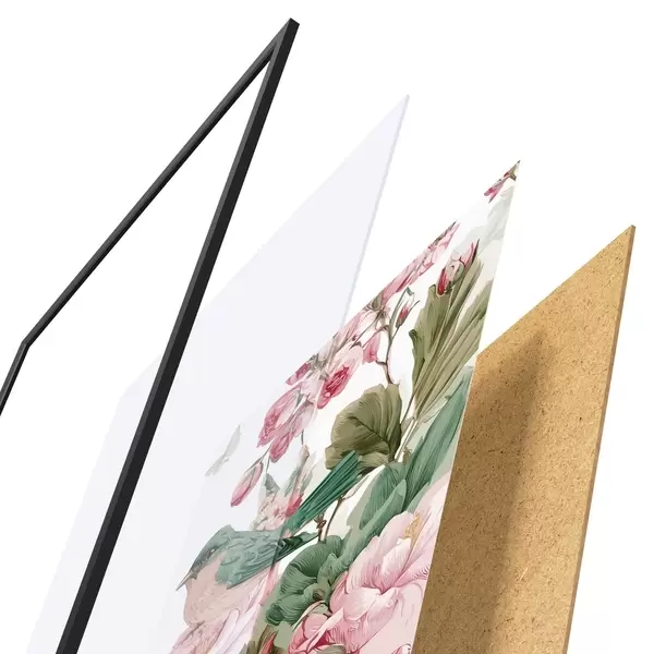 El póster consta de marco, plexiglás, imagen impresa y soporte de aglomerado. El póster puede colgarse inmediatamente en la pared gracias a los soportes de la parte posterior.