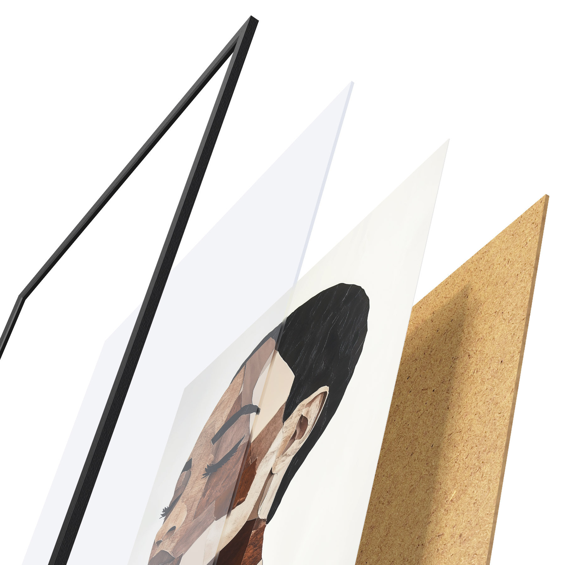 El póster consta de marco, plexiglás, imagen impresa y soporte de aglomerado. El póster puede colgarse inmediatamente en la pared gracias a los soportes de la parte posterior.