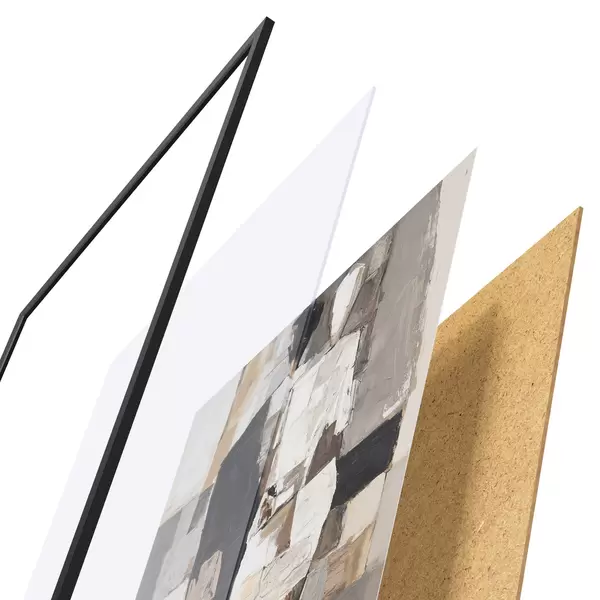 El póster consta de marco, plexiglás, imagen impresa y soporte de aglomerado. El póster puede colgarse inmediatamente en la pared gracias a los soportes de la parte posterior.