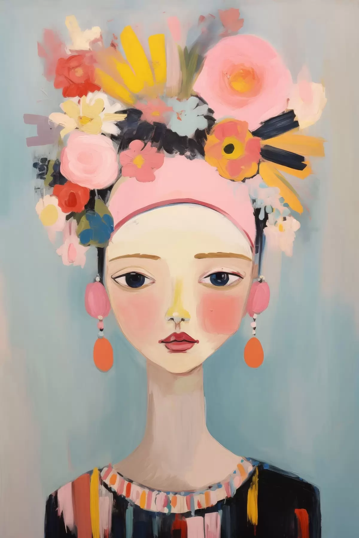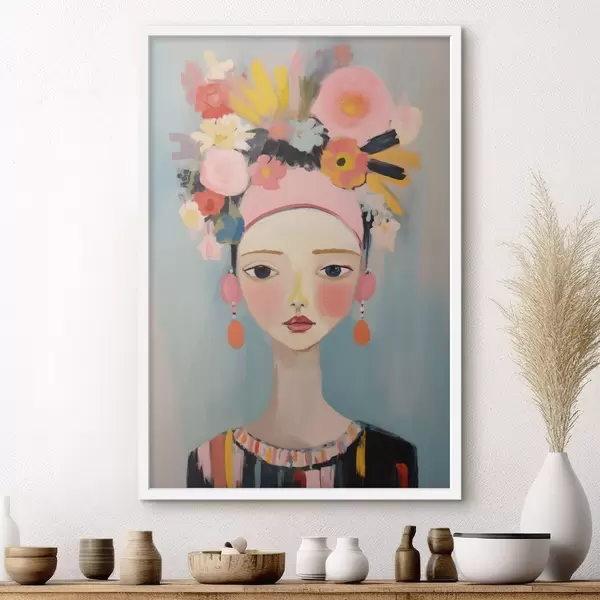 Poster Retrato de una mujer con flores en el pelo, estilo abstracto f48936