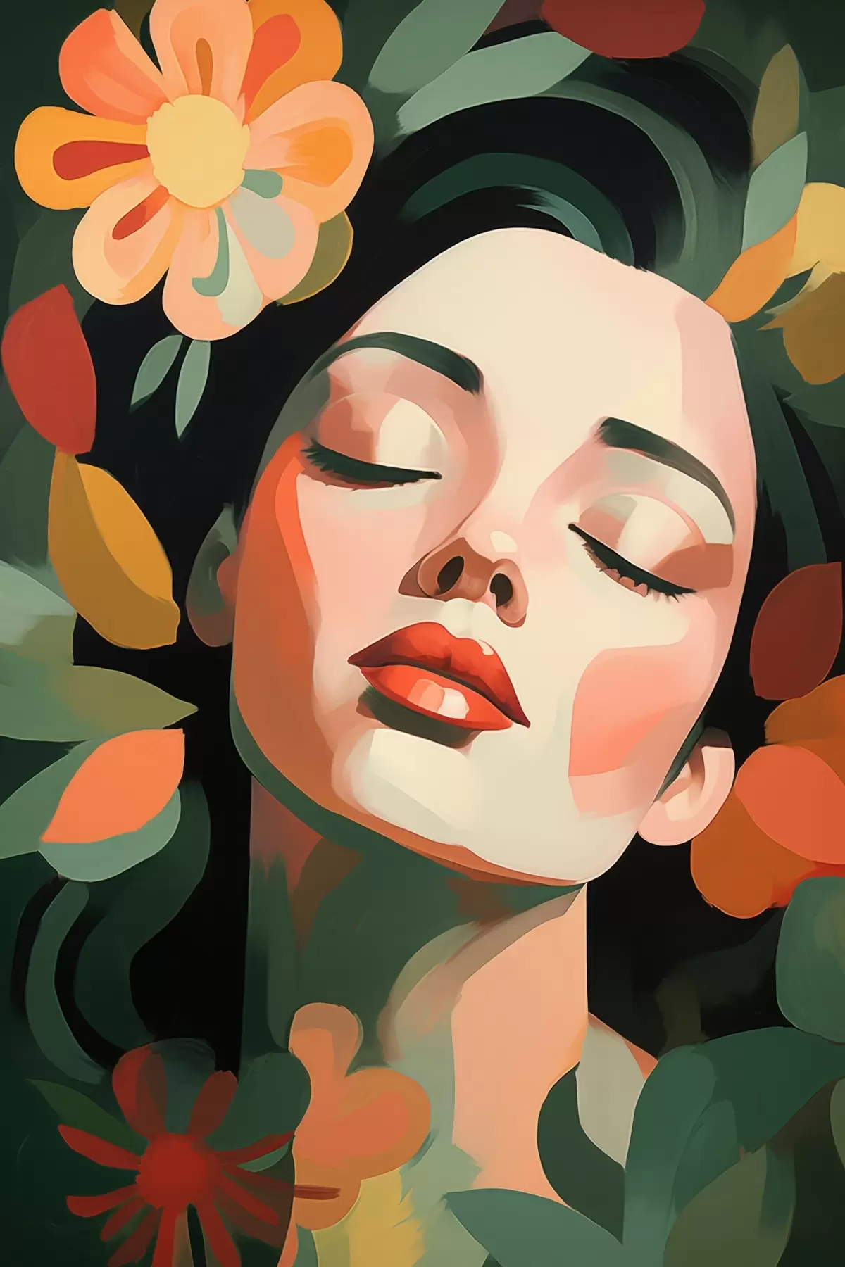 Poster Retrato femenino con flores f48959