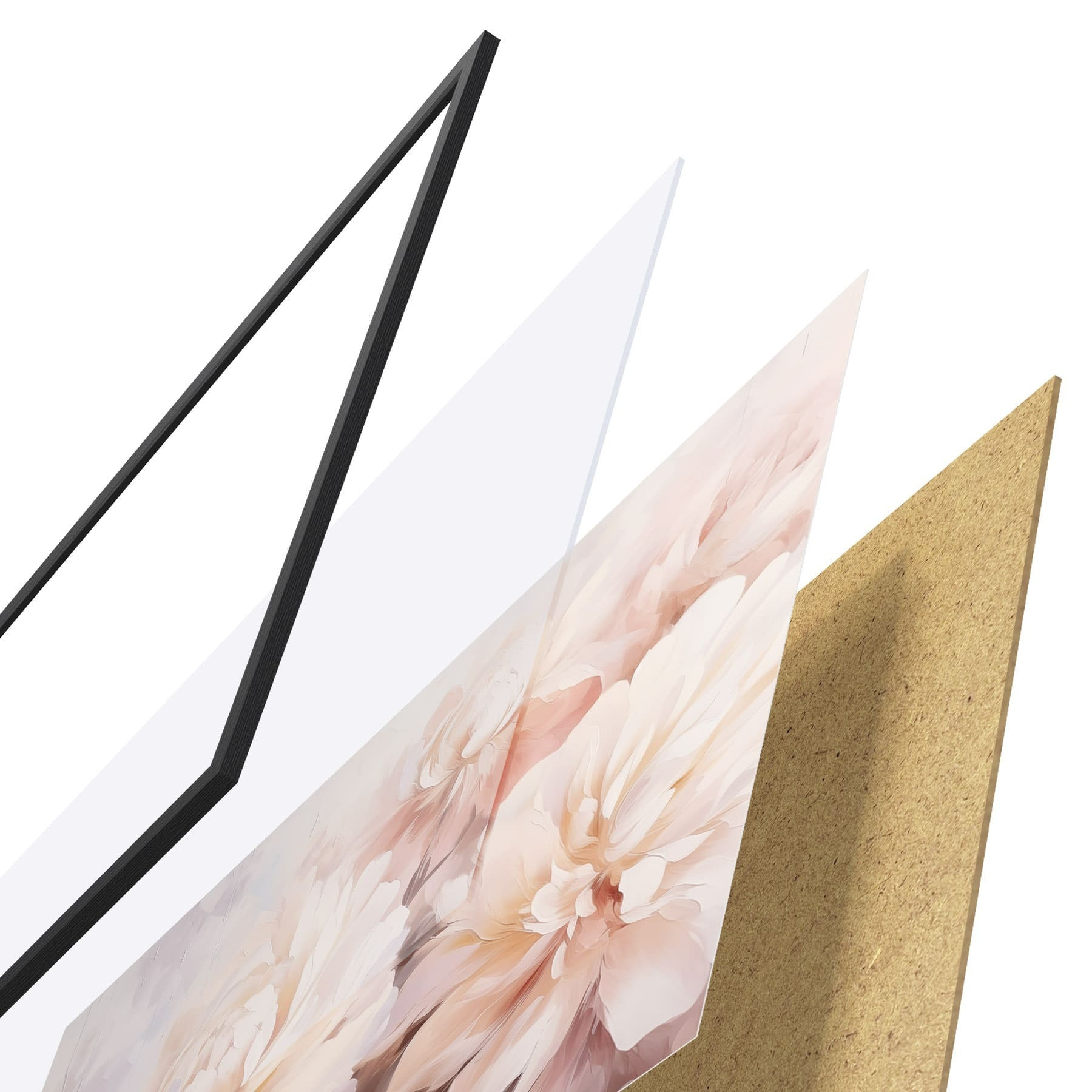 El póster consta de marco, plexiglás, imagen impresa y soporte de aglomerado. El póster puede colgarse inmediatamente en la pared gracias a los soportes de la parte posterior.