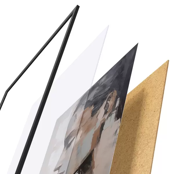 El póster consta de marco, plexiglás, imagen impresa y soporte de aglomerado. El póster puede colgarse inmediatamente en la pared gracias a los soportes de la parte posterior.
