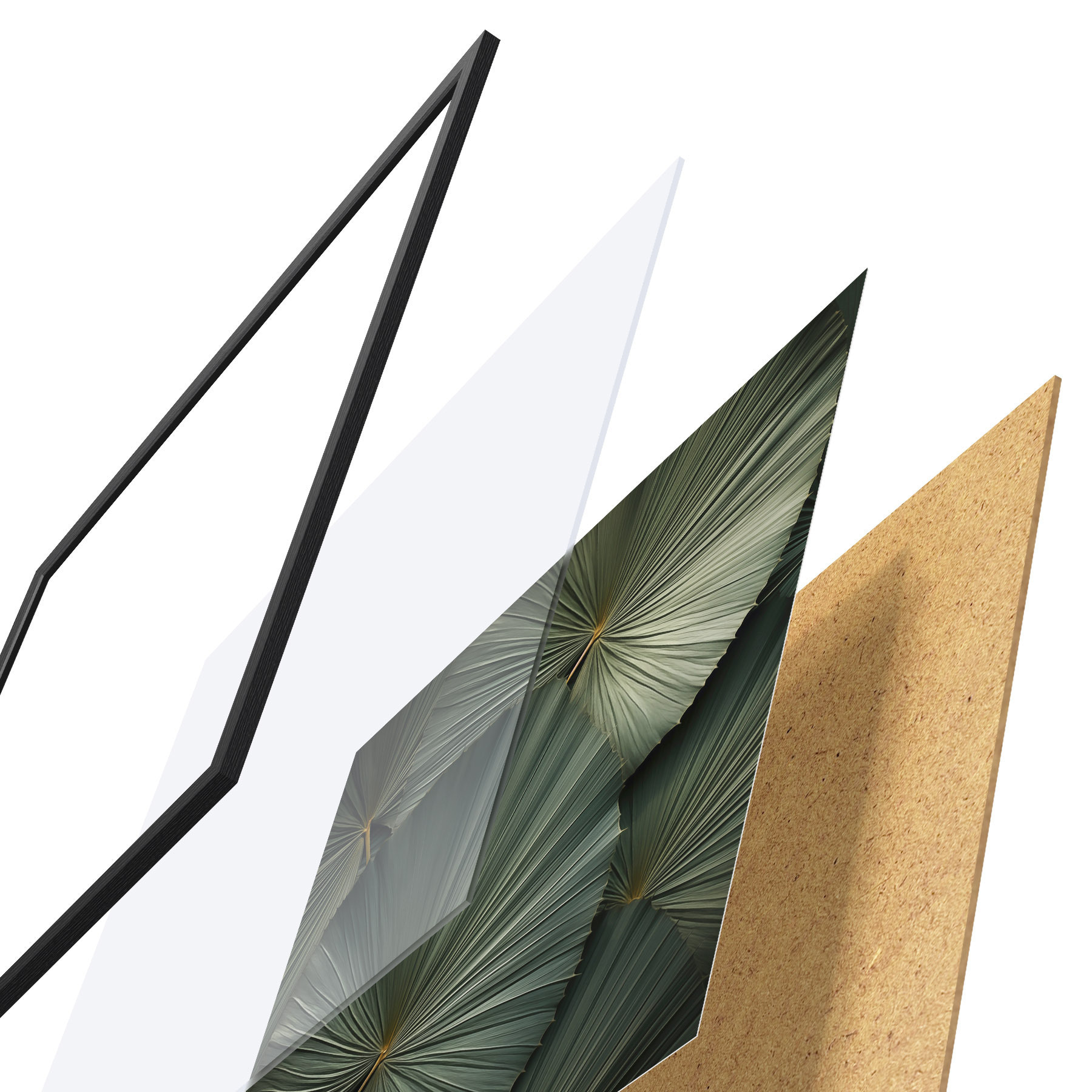 El póster consta de marco, plexiglás, imagen impresa y soporte de aglomerado. El póster puede colgarse inmediatamente en la pared gracias a los soportes de la parte posterior.