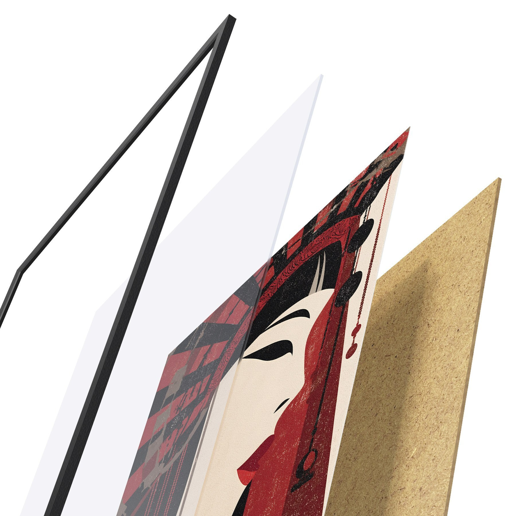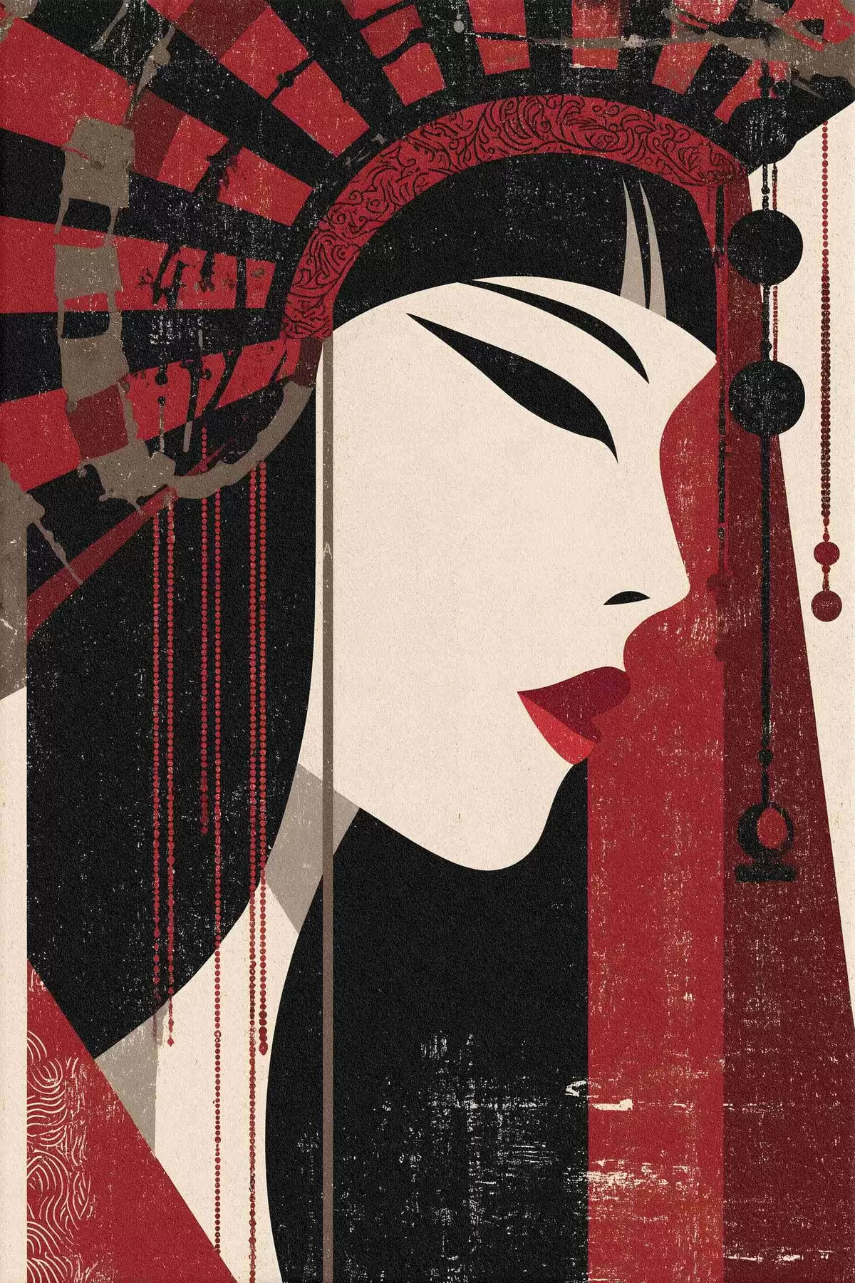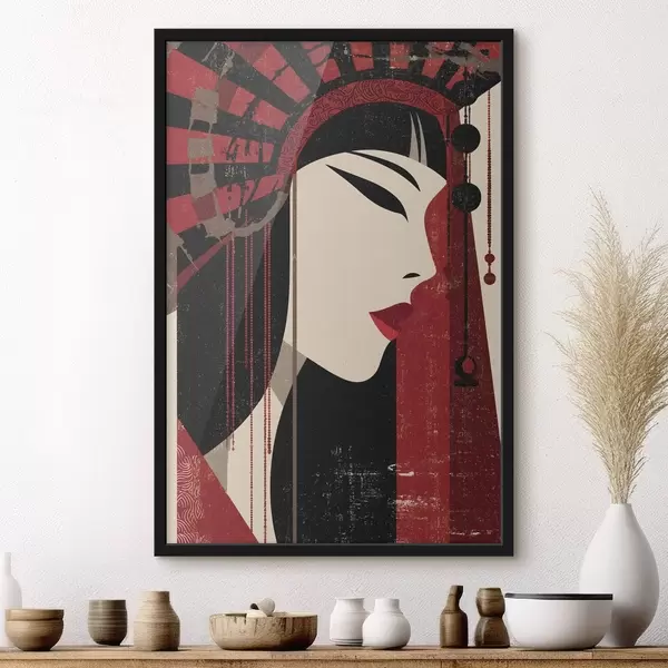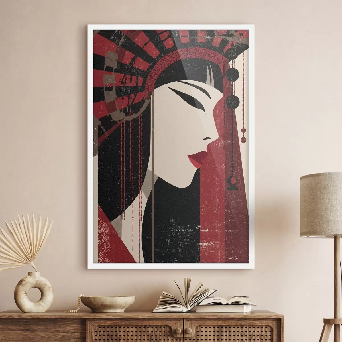 Poster Retrato estilizado de una mujer, inspirado en la estética japonesa y art déco f48993