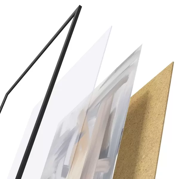 El póster consta de marco, plexiglás, imagen impresa y soporte de aglomerado. El póster puede colgarse inmediatamente en la pared gracias a los soportes de la parte posterior.