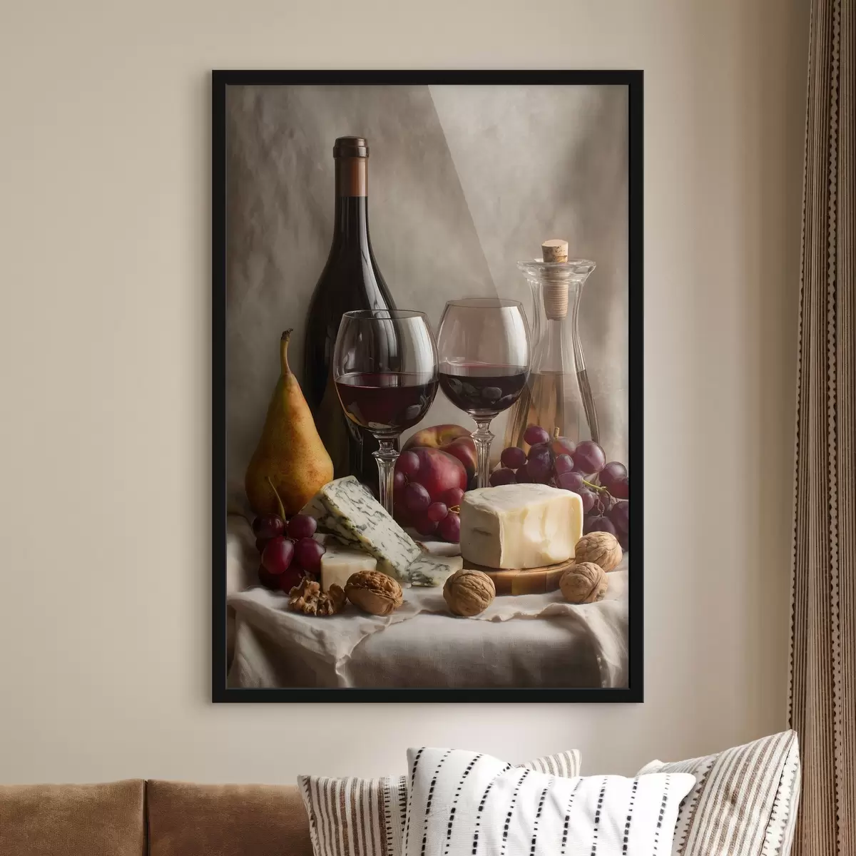 Poster naturaleza muerta con vino y queso f49002