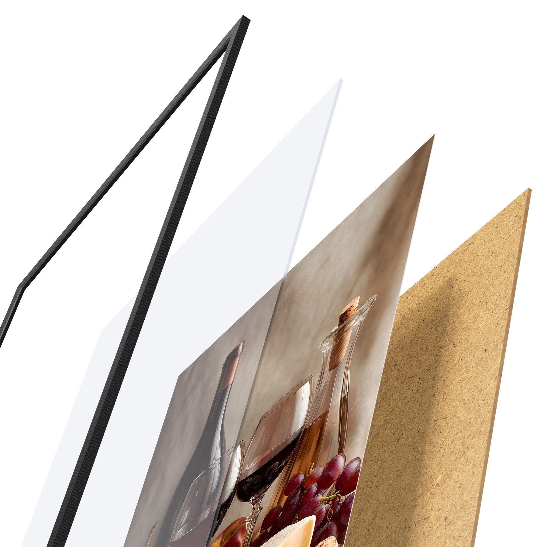 El póster consta de marco, plexiglás, imagen impresa y soporte de aglomerado. El póster puede colgarse inmediatamente en la pared gracias a los soportes de la parte posterior.