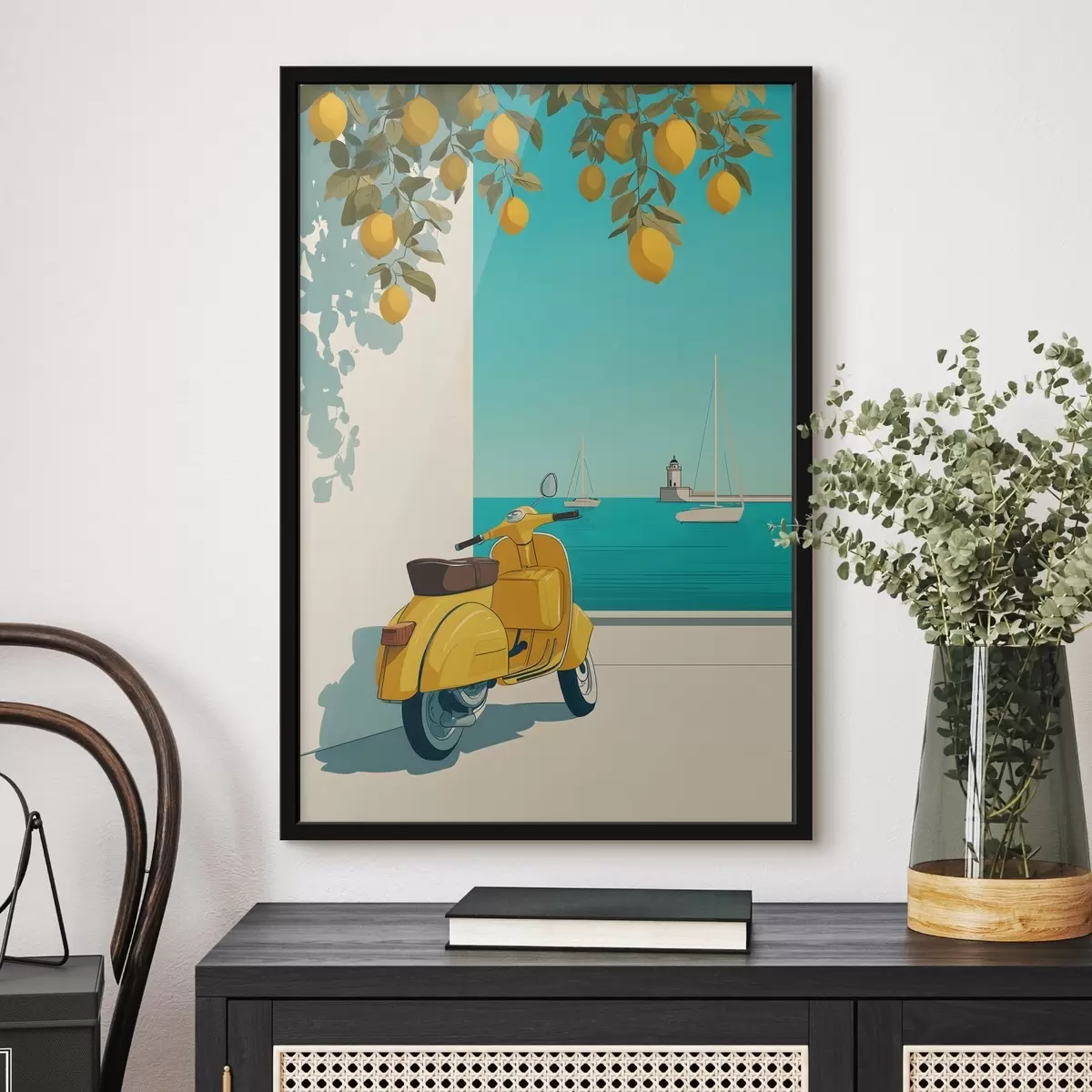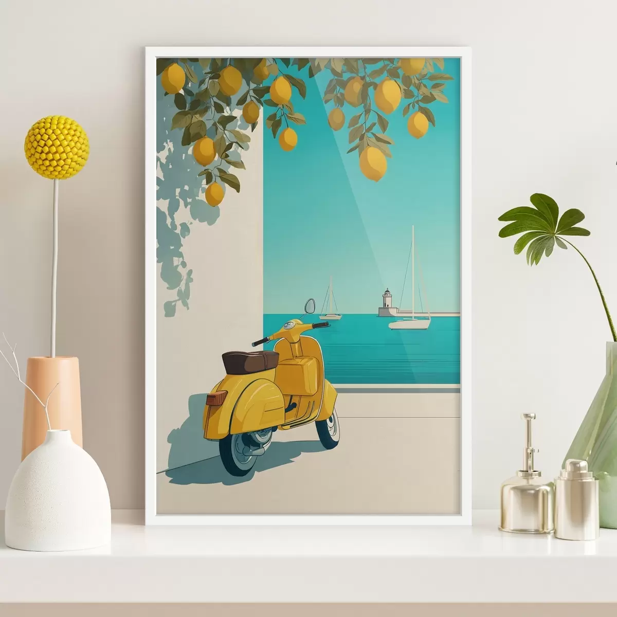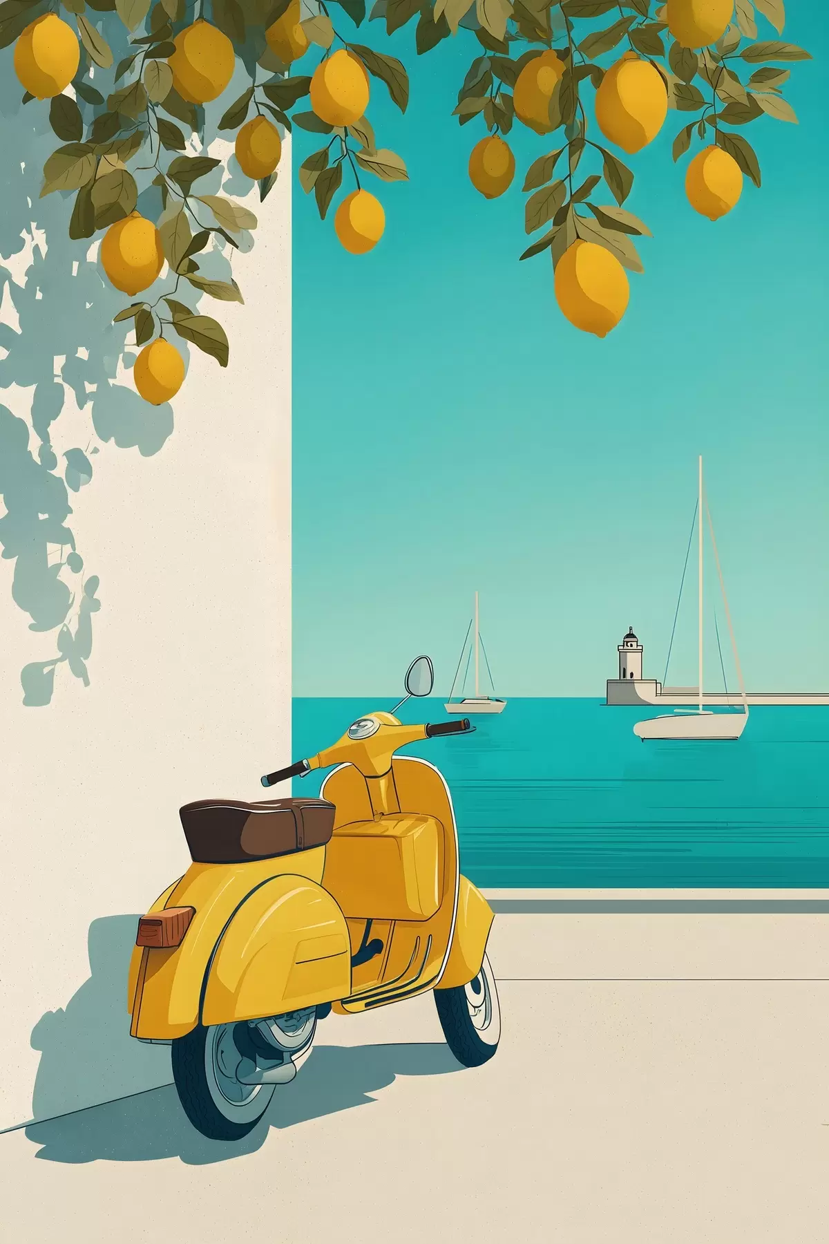 Poster una ciclomotor junto al mar, bajo los limoneros Nr f49008