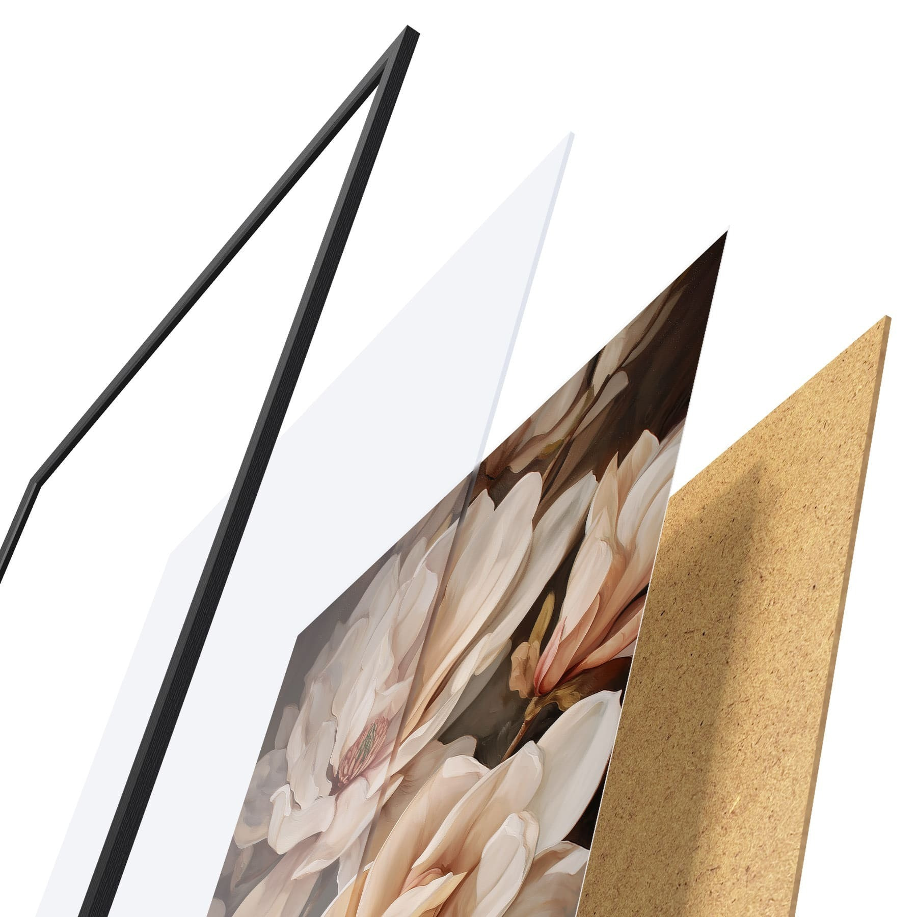 El póster consta de marco, plexiglás, imagen impresa y soporte de aglomerado. El póster puede colgarse inmediatamente en la pared gracias a los soportes de la parte posterior.