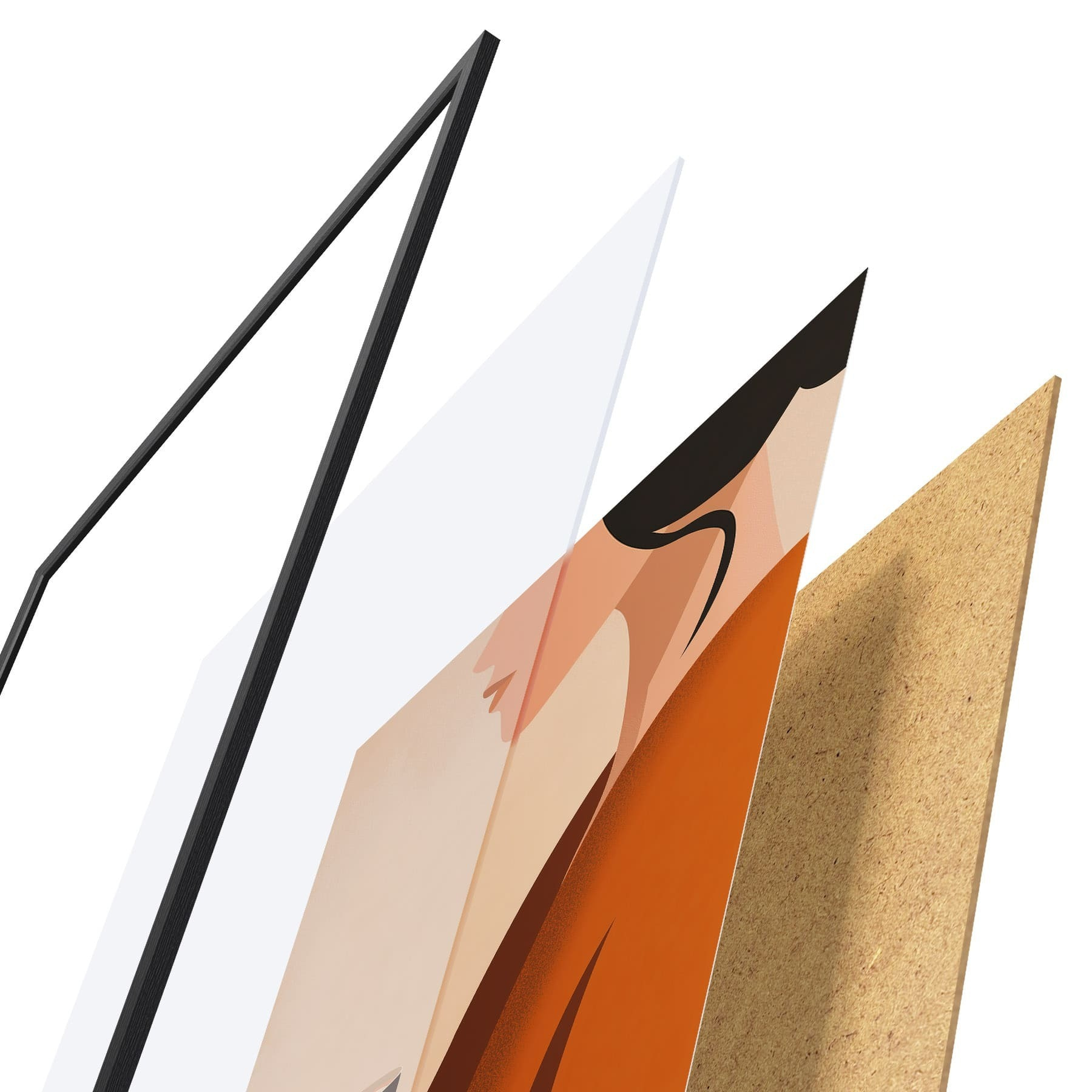 El póster consta de marco, plexiglás, imagen impresa y soporte de aglomerado. El póster puede colgarse inmediatamente en la pared gracias a los soportes de la parte posterior.