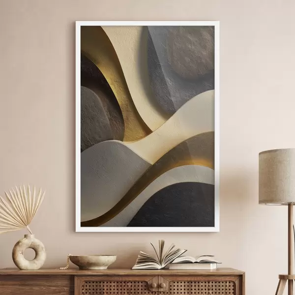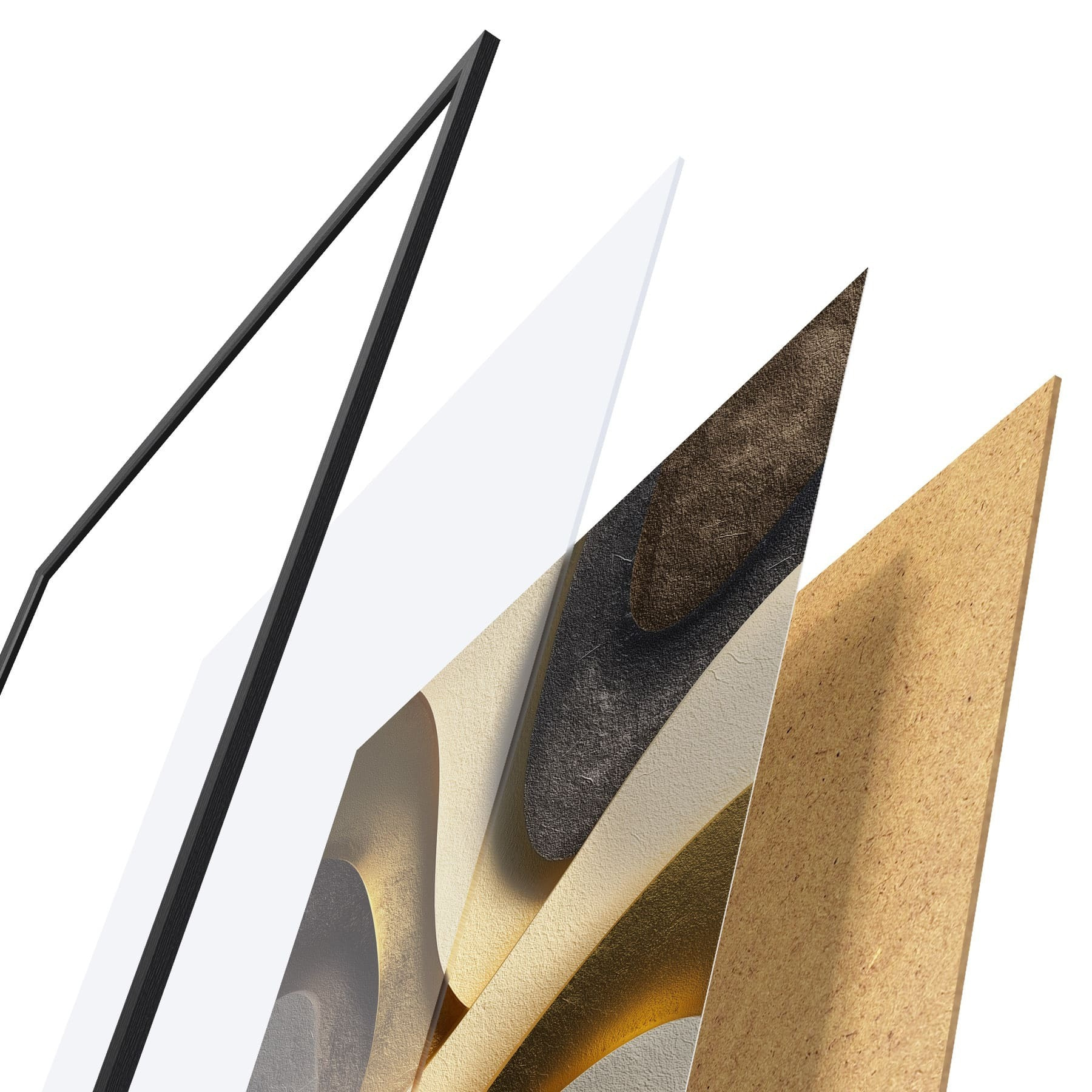 El póster consta de marco, plexiglás, imagen impresa y soporte de aglomerado. El póster puede colgarse inmediatamente en la pared gracias a los soportes de la parte posterior.