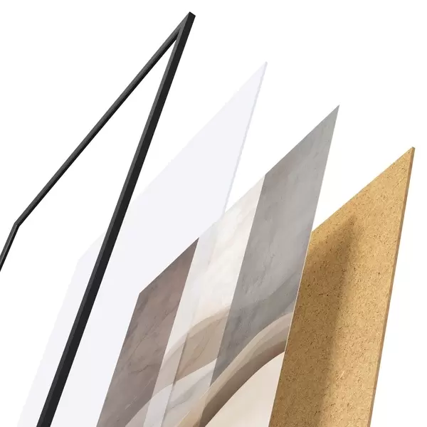 El póster consta de marco, plexiglás, imagen impresa y soporte de aglomerado. El póster puede colgarse inmediatamente en la pared gracias a los soportes de la parte posterior.