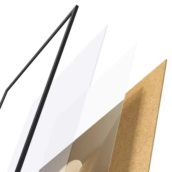 El póster consta de marco, plexiglás, imagen impresa y soporte de aglomerado. El póster puede colgarse inmediatamente en la pared gracias a los soportes de la parte posterior.